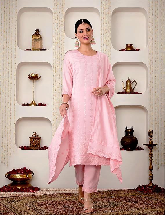 Amazon Brand - Myx Women's Embroidered Kurta Pant Set with Dupatta