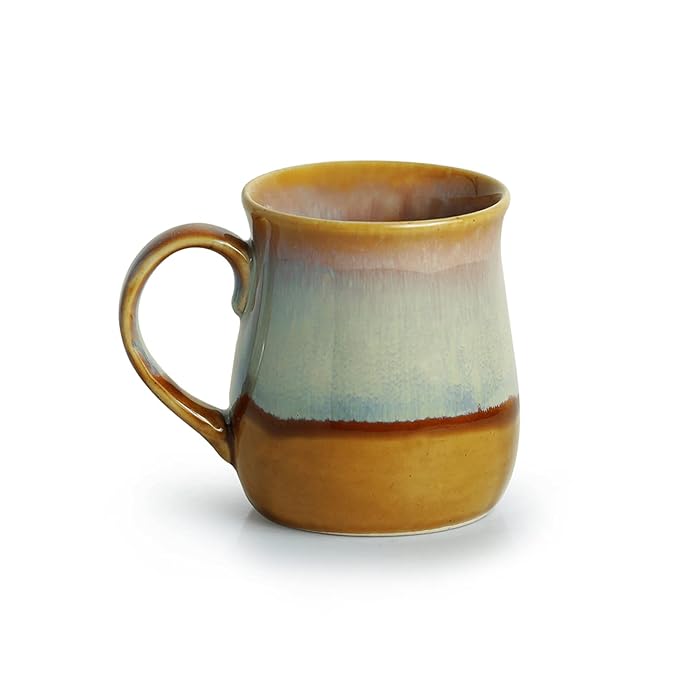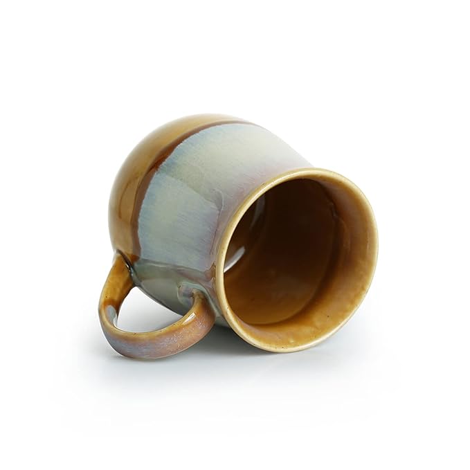 ExclusiveLane Dual-Glazed Studio Pottery Serving Tea Cups Set & Ceramic Coffee Mugs Set of 2 (360 ML, Mustard Yellow and Off White, Microwave & Dishwasher Safe)